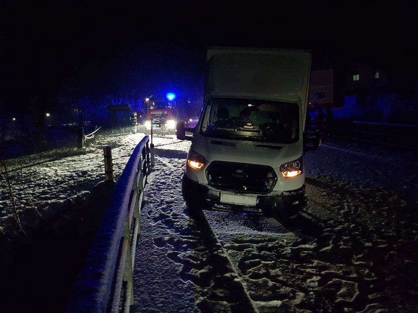 Aufgrund der winterlichen Fahrverhältnisse kam in Elsenau Höhe GH Zingl-Jostl ein Klein-LKW ins Schleudern und prallte gegen eine Brücke.