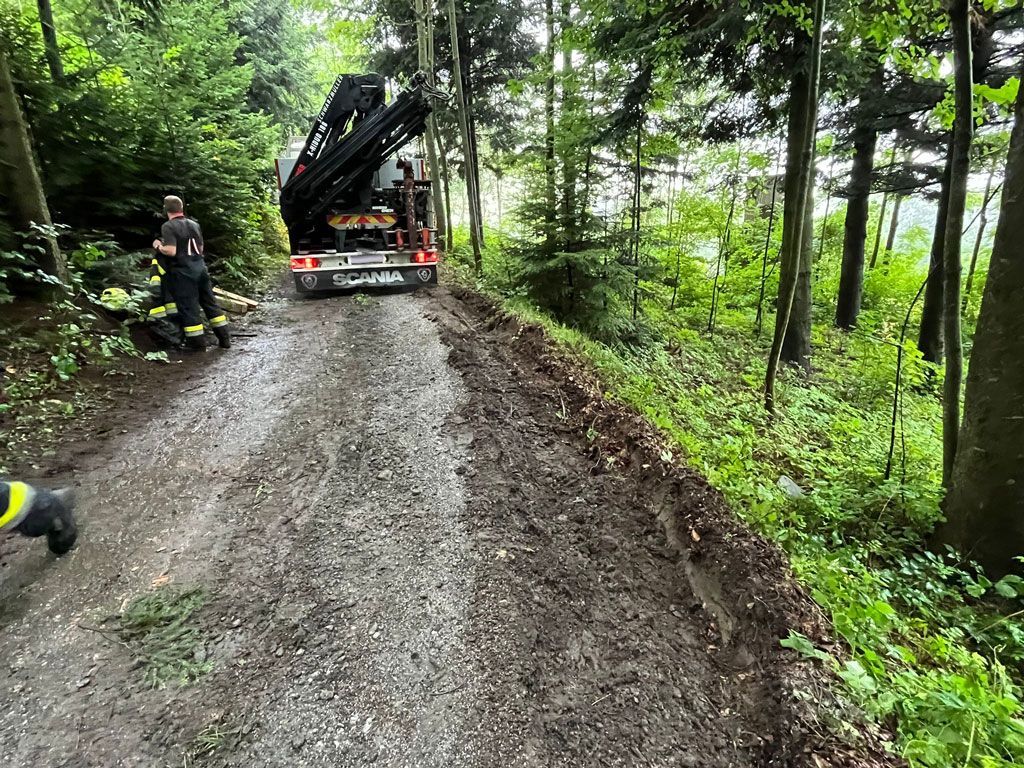 Am Freitag, den 04.08.2023 wurde die FF Schäffern zu einer LKW Bergung nach Anger alarmiert. Ein mit Ziegeln beladener LKW ist vom Weg abgekommen und in den Straßengraben gerutscht. Die Bergung stellte sich als schwierig heraus. Der LKW wurde zunächst gesichert, um ein weiteres Abrutschen zu verhindern. Danach musste ein weiterer LKW angefordert werden um die Ziegeln umzuladen ehe der LKW schließlich mit der Seilwinde des TLF-A 3000 geborgen werden konnte.