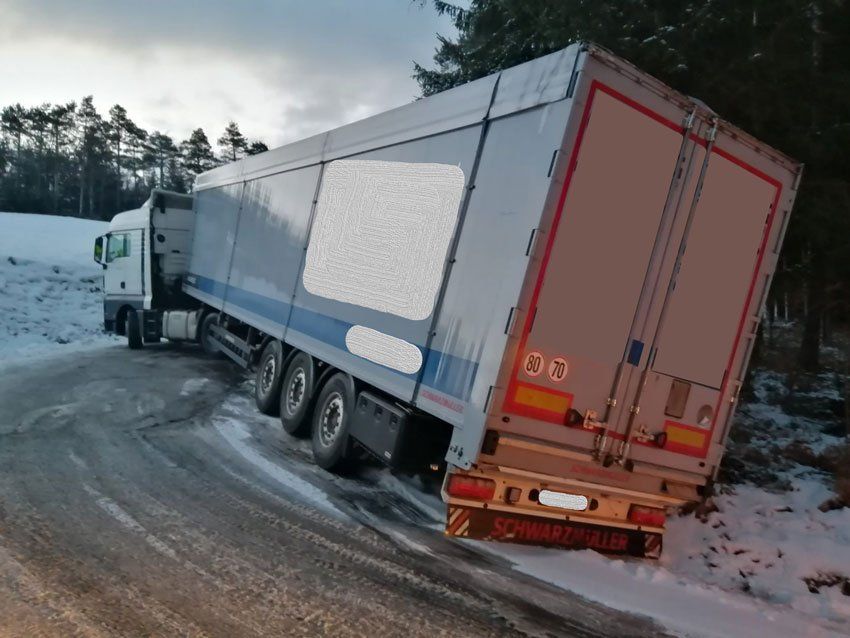 Ein LKW war trotz der winterlichen Fahrverhältnisse und Kettenpflicht ohne Schneeketten von Schäffern Richtung Knolln unterwegs. Am Fuchsenriegel blieb er schließlich hängen und blockierte die Straße.