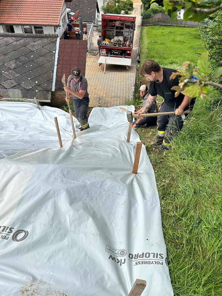 Am Samstag, den 15.06.2024 wurden noch Hänge mit Abdeckplanen gesichert und betroffene Haushalte bei Aufräumarbeiten unterstützt, ehe schließlich im Feuerwehrhaus eine Grundreinigung durchgeführt wurde. Das Schlimmste scheint nun überstanden zu sein, dennoch stehen wir immer noch vereinzelt bei Hangsicherungsarbeiten und diversen Hilfeleistungsarbeiten aufgrund des Unwetters im Einsatz.