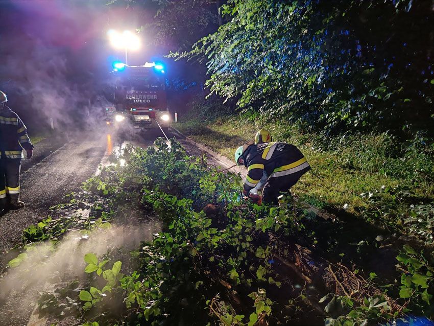 Auf der L423 zwischen Elsenau und Schäffernsteg sind mehrere Bäume auf die Straße gestürzt und blockierten diese. Die Bäume wurden mit der Motorsäge und Seilwinde des TLF-A 3000 von der Fahrbahn entfernt. In weiterer Folge unterstützten wir die FF Sparberegg, die ebenfalls im Einsatz stand und mehrere Einsatzlagen aufgrund umgestürzter Bäume zu bewältigen hatte.