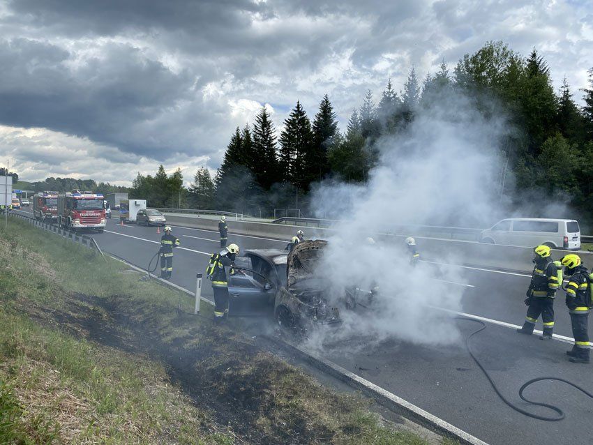 Am 13.06.2022 wurden die Feuerwehren Schäffern und Pinggau zu einem PKW Brand auf die A2 alarmiert. Beim Eintreffen der Einsatzkräfte am Einsatzort stand der PKW bereits in Vollbrand. Unter Einsatz von schwerem Atemschutz und HD-Rohr konnte der Brand rasch gelöscht werden. Anschließend wurde das Wrack von der FF Pinggau mittels WLF-K verladen und abtransportiert. Verletzt wurde glücklicherweise niemand.