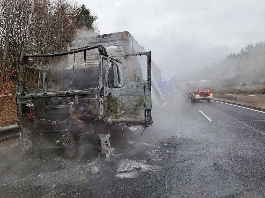 Der LKW Fahrer konnte das Fahrzeug zum Glück noch rechtzeitig verlassen und blieb unverletzt.