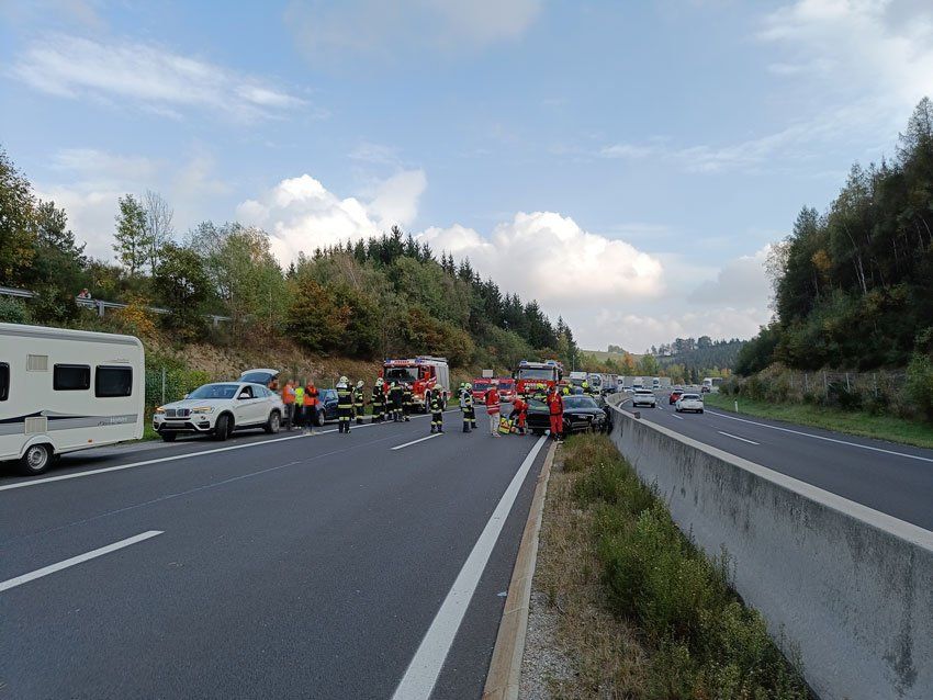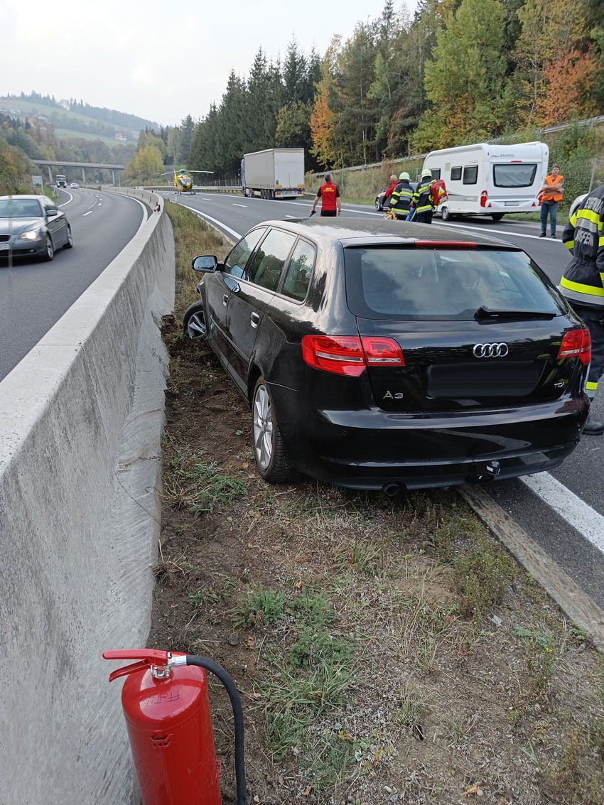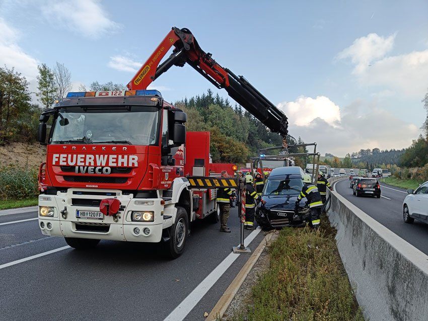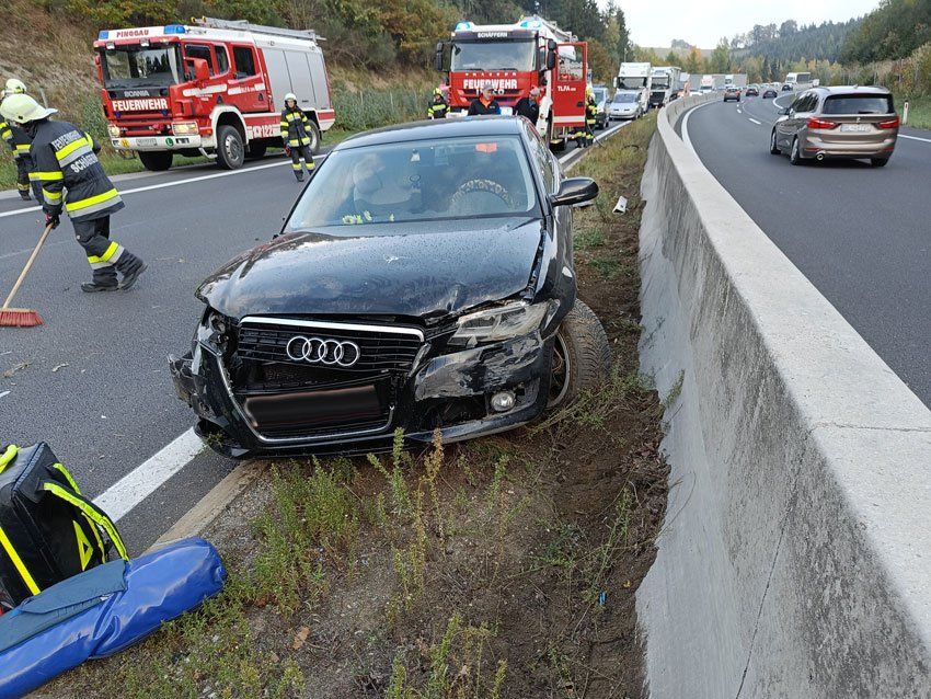 Eine PKW-Lenkerin war ins Schleudern geraten und gegen die Betonmittelleitwand gekracht. Die Frau erlitt dabei Verletzungen unbestimmten Grades, war jedoch nicht im PKW eingeklemmt.