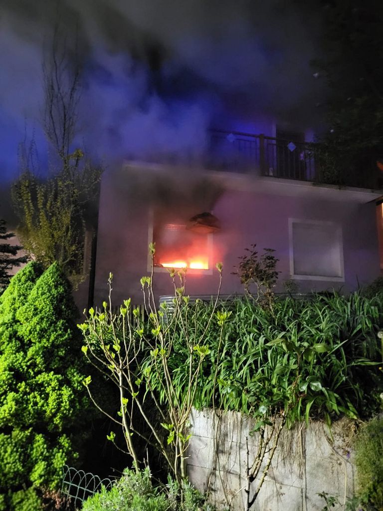 Im Wohnzimmer eines Wohnhauses war aus bislang ungeklärter Ursache ein Brand ausgebrochen. Erste Löschversuche durch den Hausbesitzer mit einem Feuerlöscher blieben leider erfolglos. Zu diesem Zeitpunkt befanden sich sechs Personen im Haus, die sich glücklicherweise alle rechtzeitig ins Freie retten konnten und unverletzt blieben.