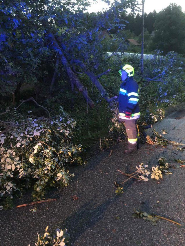 Ein Baum war aufgrund der starken Windböen auf eine Stromleitung gestürzt. Nach Rücksprache mit dem örtlich zuständigen Energieversorgungsunternehmen konnte der Baum entfernt werden. Im Anschluss daran wurden weitere Baumbergungen im Gemeindegebiet durchgeführt und anschließend die Straße gesäubert.