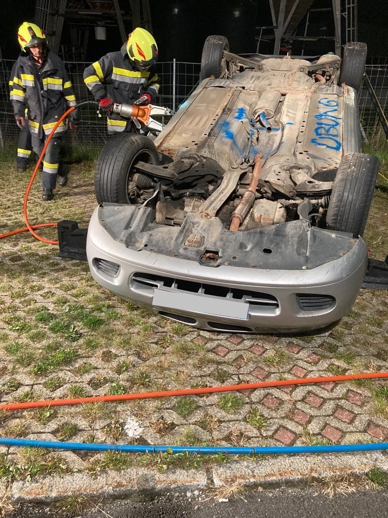 Die Übungsannahme war ein Verkehrsunfall mit 2 beteiligten Fahrzeugen. Eine Person ist in einem PKW eingeklemmt, schwer verletzt aber ansprechbar.