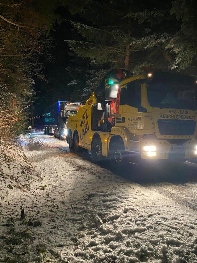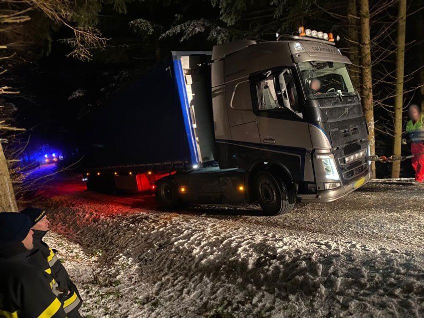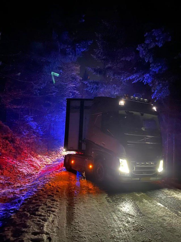 Um 21:31 Uhr wurden wir erneut zu einer LKW Bergung am Fuchsenriegel gerufen. Ein LKW beladen mit insgesamt 5.000 Masthühner war aufgrund der winterlichen Fahrverhältnisse hängen geblieben.