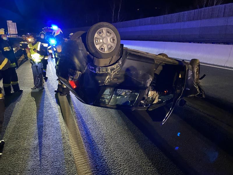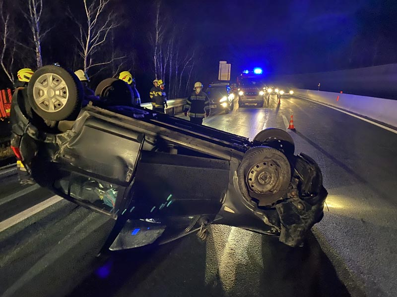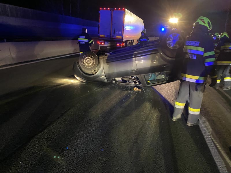 Ein PKW geriet bei KM 82 in Fahrtrichtung Wien ins Schleudern, überschlug sich und kam schließlich auf dem Dach zu liegen. Die Lenkerin erlitt dabei wie durch ein Wunder keine schwereren Verletzungen.