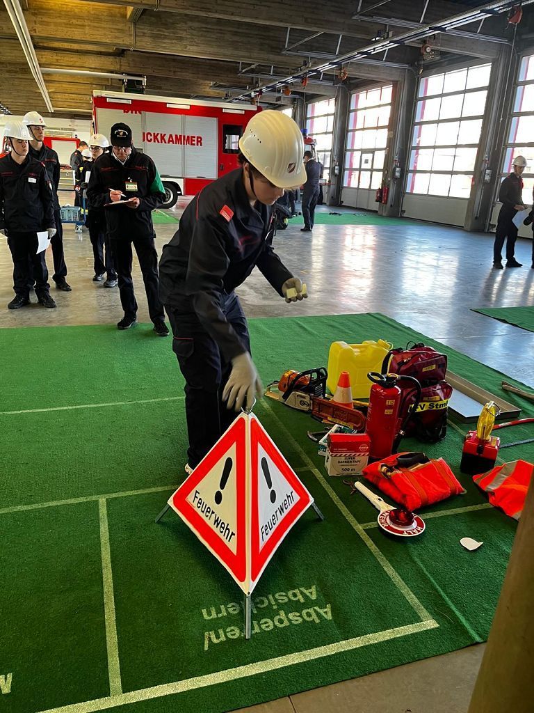 Neben einer theoretischen Prüfung aus einem umfangreichen Fragenkatalog bestand die Prüfung unter anderem auch aus Fragen und praktischen Übungen im Bereich der Ersten Hilfe. Weiters mussten praktische Übungen im „Brandeinsatz“ und „Technischen Einsatz“ gemeistert werden.