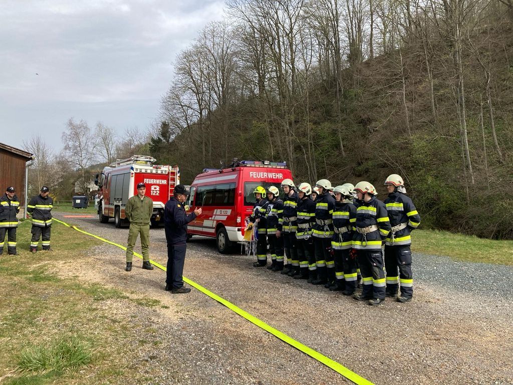 Um 10:00 Uhr wurde mit den praktischen Übungen, bei denen ein Löschangriff sowie ein Technischer Einsatz vorgeführt werden mussten, gestartet. Beide Szenarien konnten den Prüfern BI d. F Hans-Jürgen Semler, ABI d.F. Josef Hatzl, OBI d. F Hannes Haindl und HBI Jürgen Stark fehlerfrei vorgeführt werden.